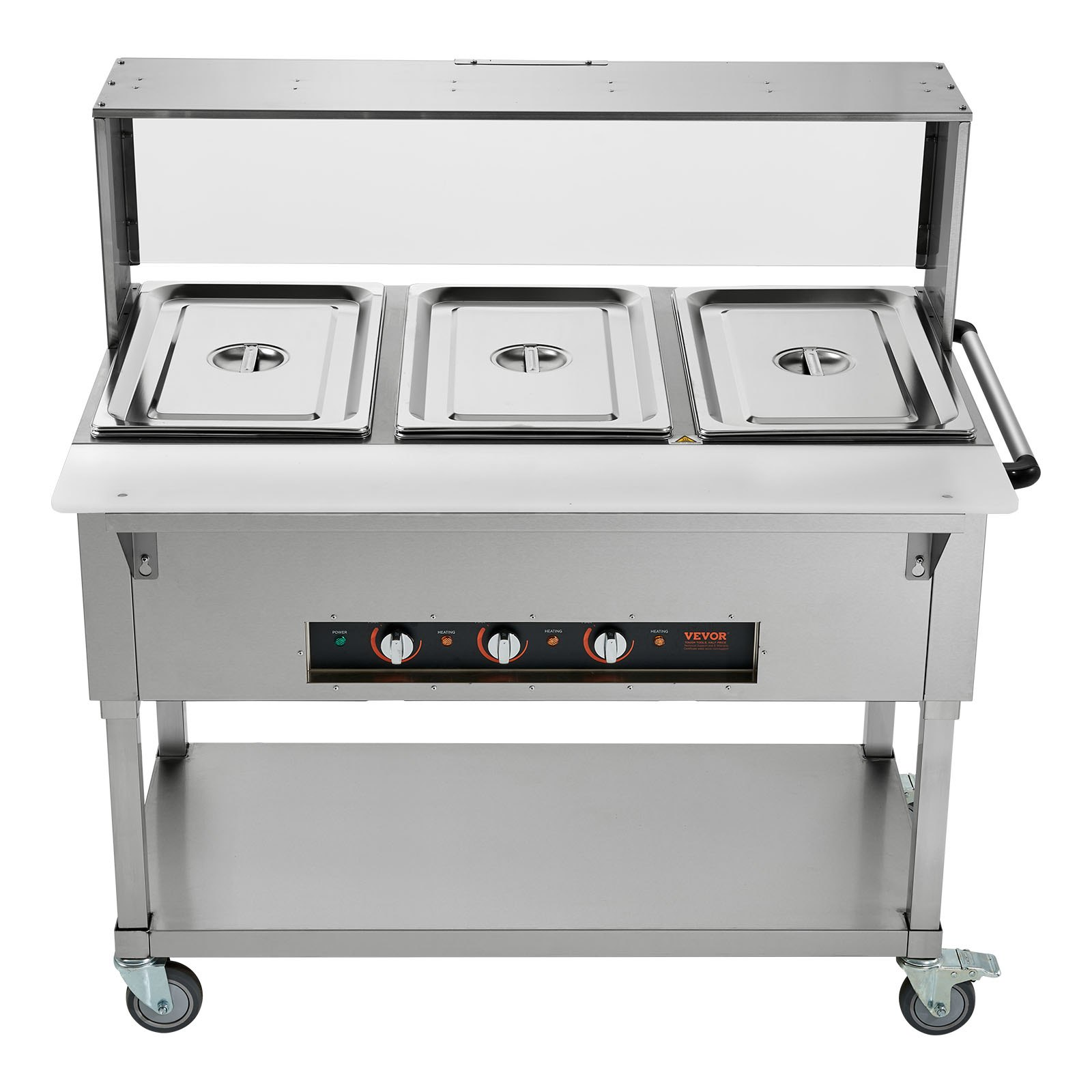 VEVOR 3-Pan Commercial Food Warmer, 3 x 20.6QT Electric Steam Table, 1500W Professional Buffet Catering Food Warmer with Acrylic Sneeze Guard, Food Grade Stainless Steel Server for Party Restaurant