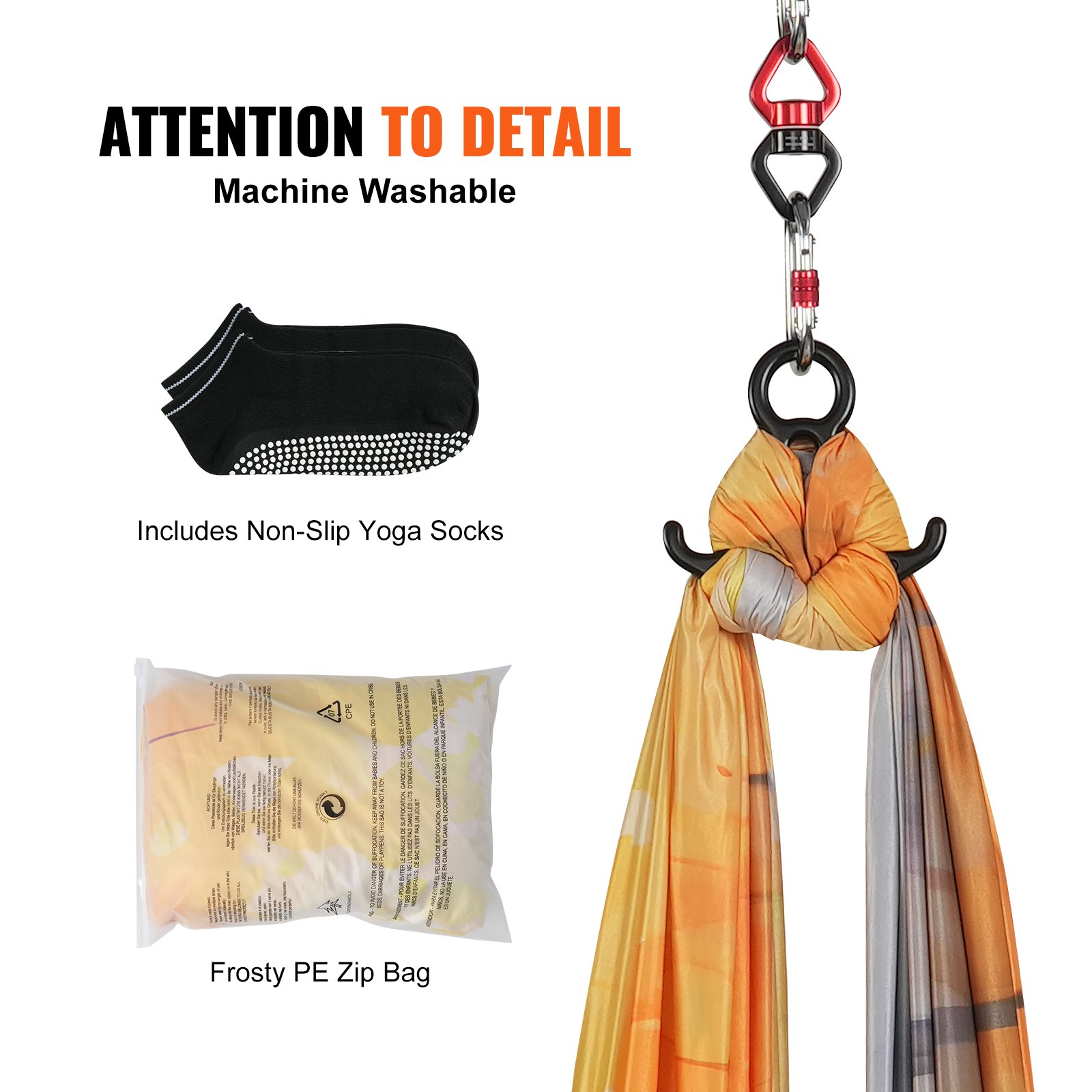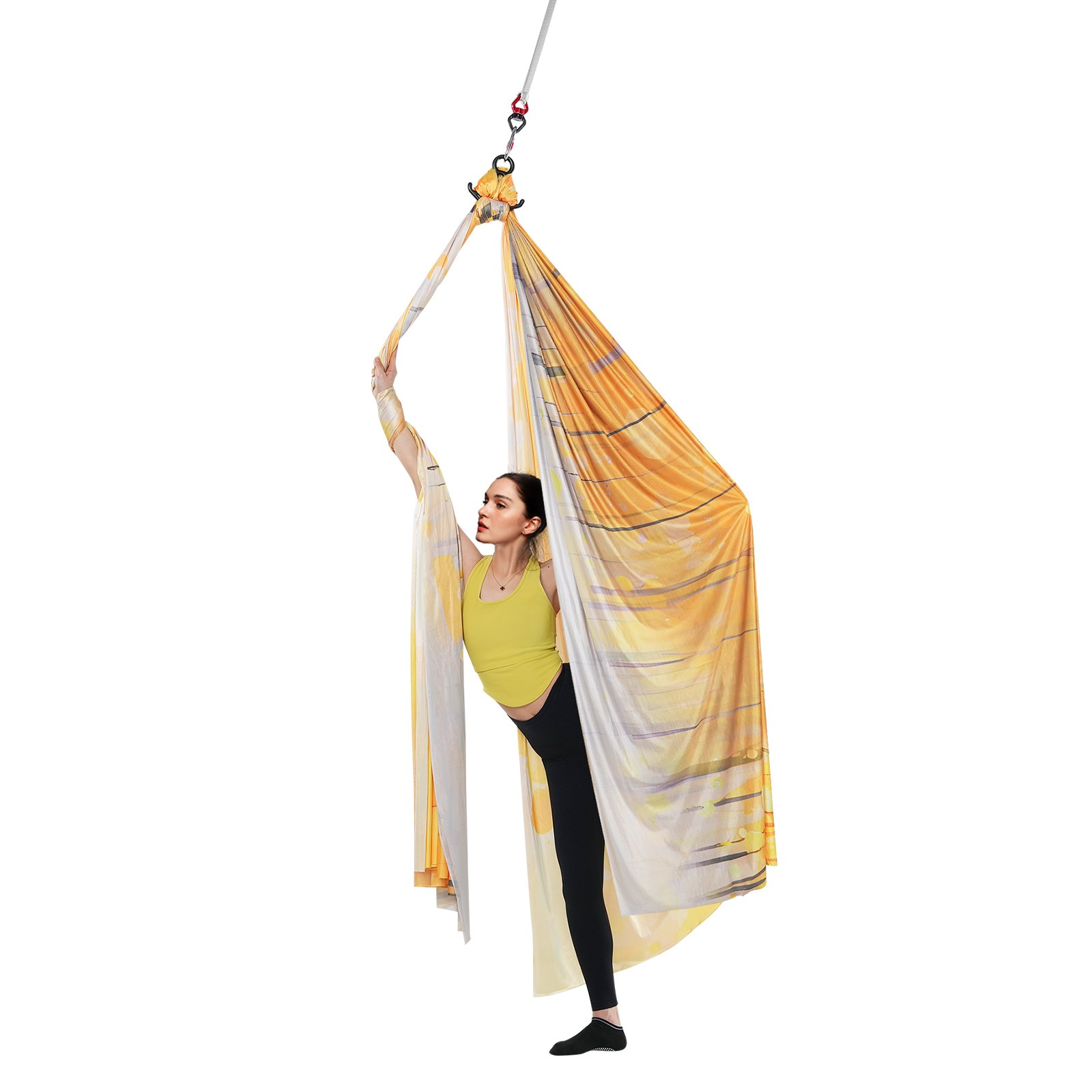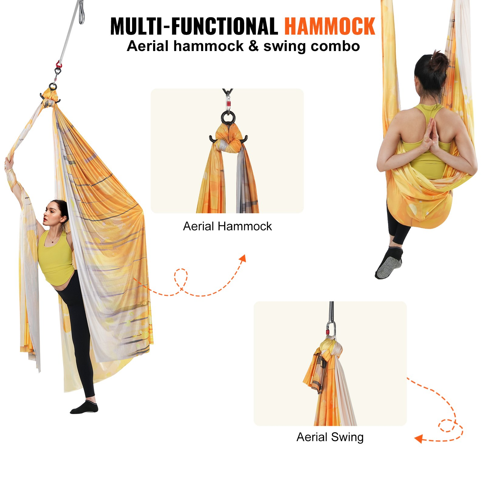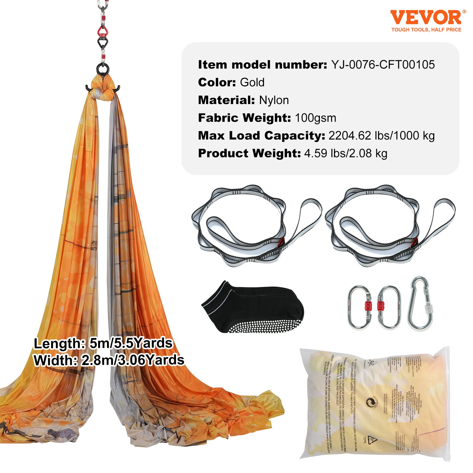 VEVOR Aerial Yoga Hammock & Swing, 5.5 Yards, Aerial Yoga Starter Kit with 100gsm Nylon Fabric, Full Rigging Hardware & Easy Set-up Guide, Antigravity Flying for All Levels Fitness Bodybuilding, Gold