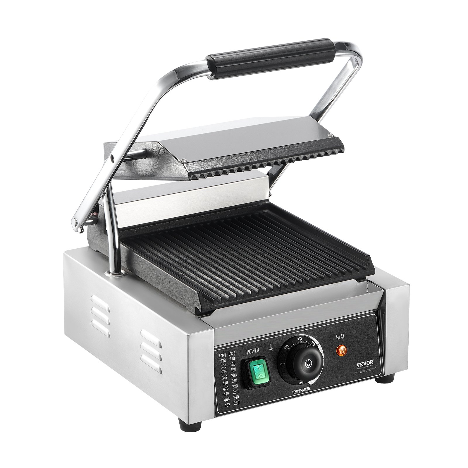 VEVOR Commercial Panini Press Grill Electric Sandwich Maker Griddle Plate 9"x9"