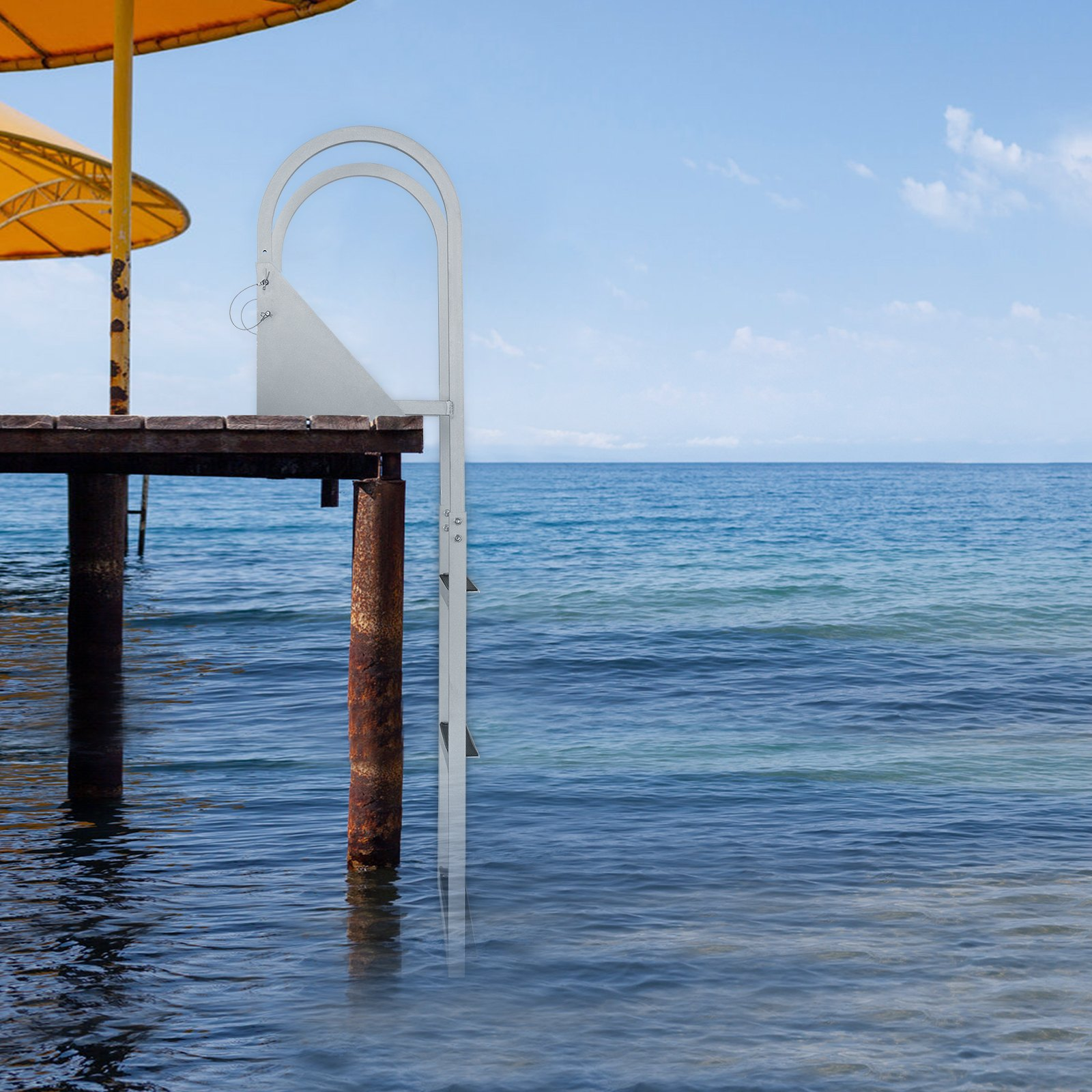 VEVOR Dock Ladder, Flip-Up 3 Steps, 350 lbs Load Capacity, Aluminum Alloy Pontoon Boat Ladder with 2'' Wide Step & Nonslip Rubber Mat, Easy to Install for Ship/Lake/Pool/Marine Boarding
