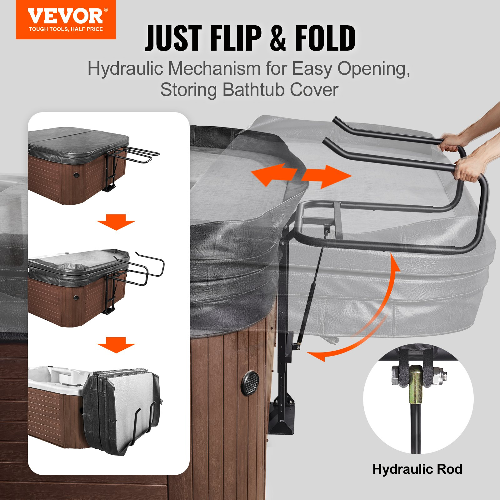 VEVOR Hot Tub Cover Lift, Spa Cover Lift, Hydraulic, Height 33.1" - 41.3" Width 53.1" - 92.5" Adjustable, Installed Underneath on one Sides, Suitable for Various Sizes of Hot Tubs, Spa