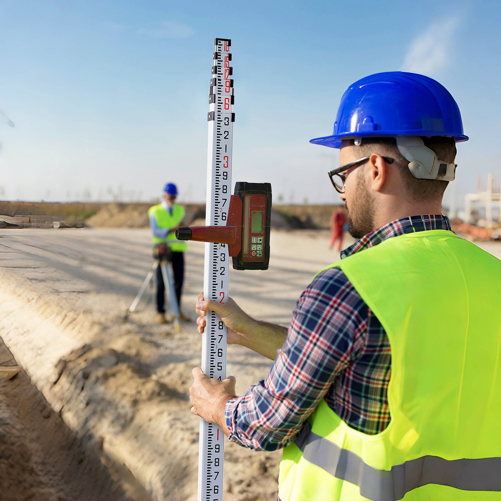 VEVOR Measuring Rod 18-Feet/10ths 6 Sections Telescopic Grade Rod 1/10ft w/ Bag