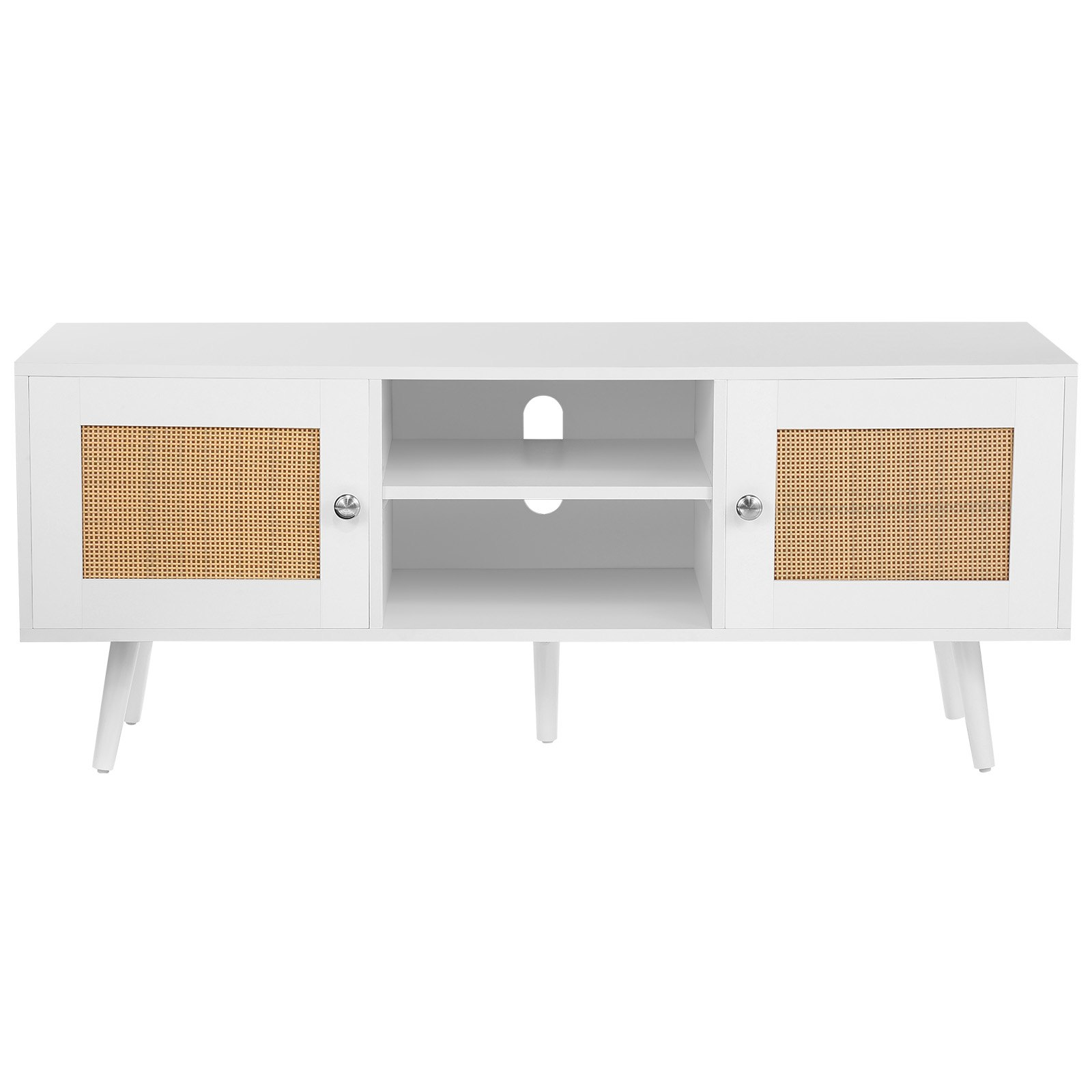 VEVOR Rattan TV Stand, Boho TV Cabinet for 55 inch TV, Mid Century Modern TV Stand, Rattan TV Console with Adjustable Shelfs for Living Room, Media Room, White