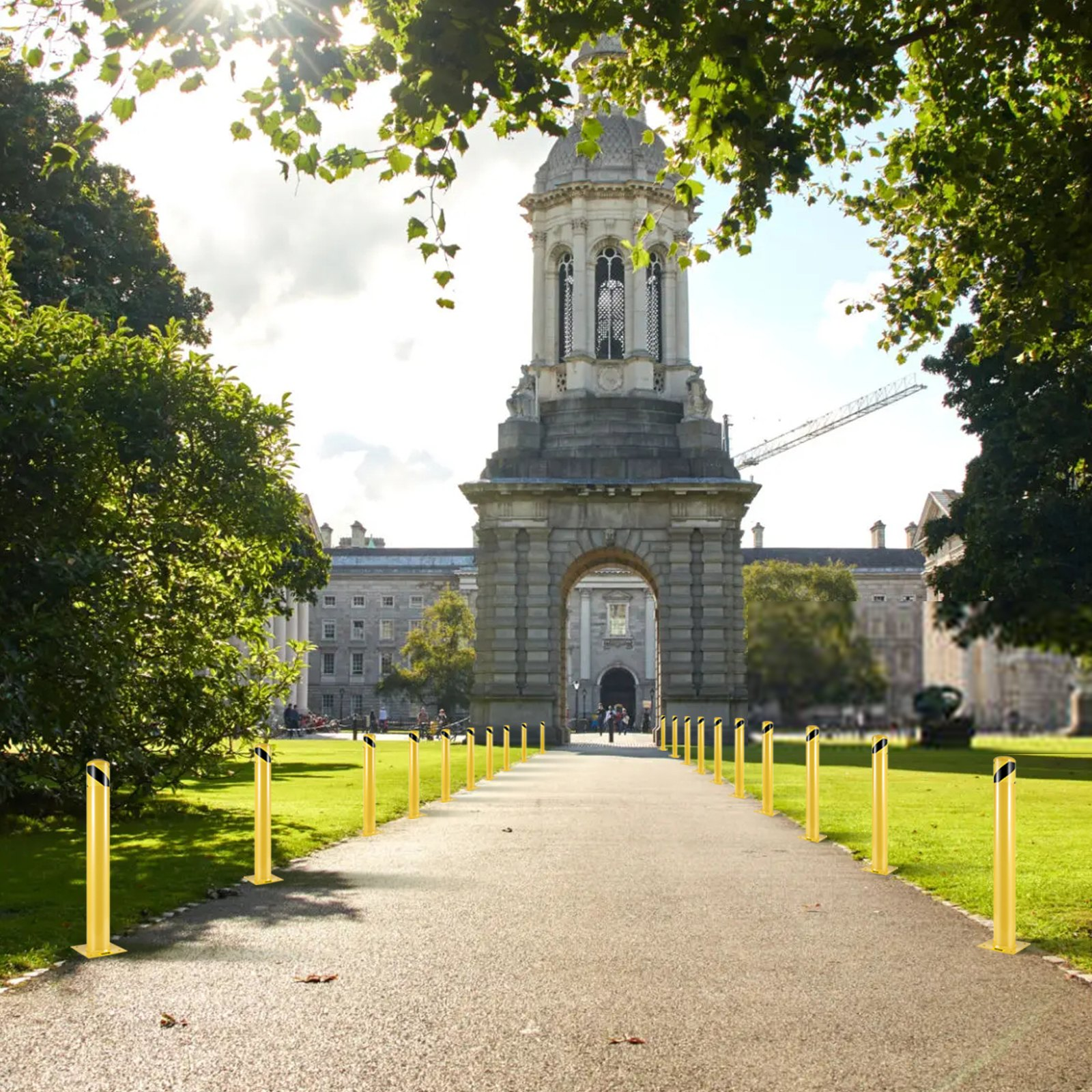 Base Size(L x W): 7.9 x 7.9 in / 20 x 20 cm,Color: Yellow and Black,Model: Safety Bollard 36 x 4.5 in,Base Thickness: 0.2 in / 5 mm,Material: Q235 Steel,Height: 36 in / 91.4 cm,Net Weight: 18 lbs / 8 kg,Tube Thickness: 0.08 in / 2 mm,Tube Diameter: 4.5 in / 11.4 cm,Included Bundle Parts: 1 set (4 pieces )mounting anchor bolts