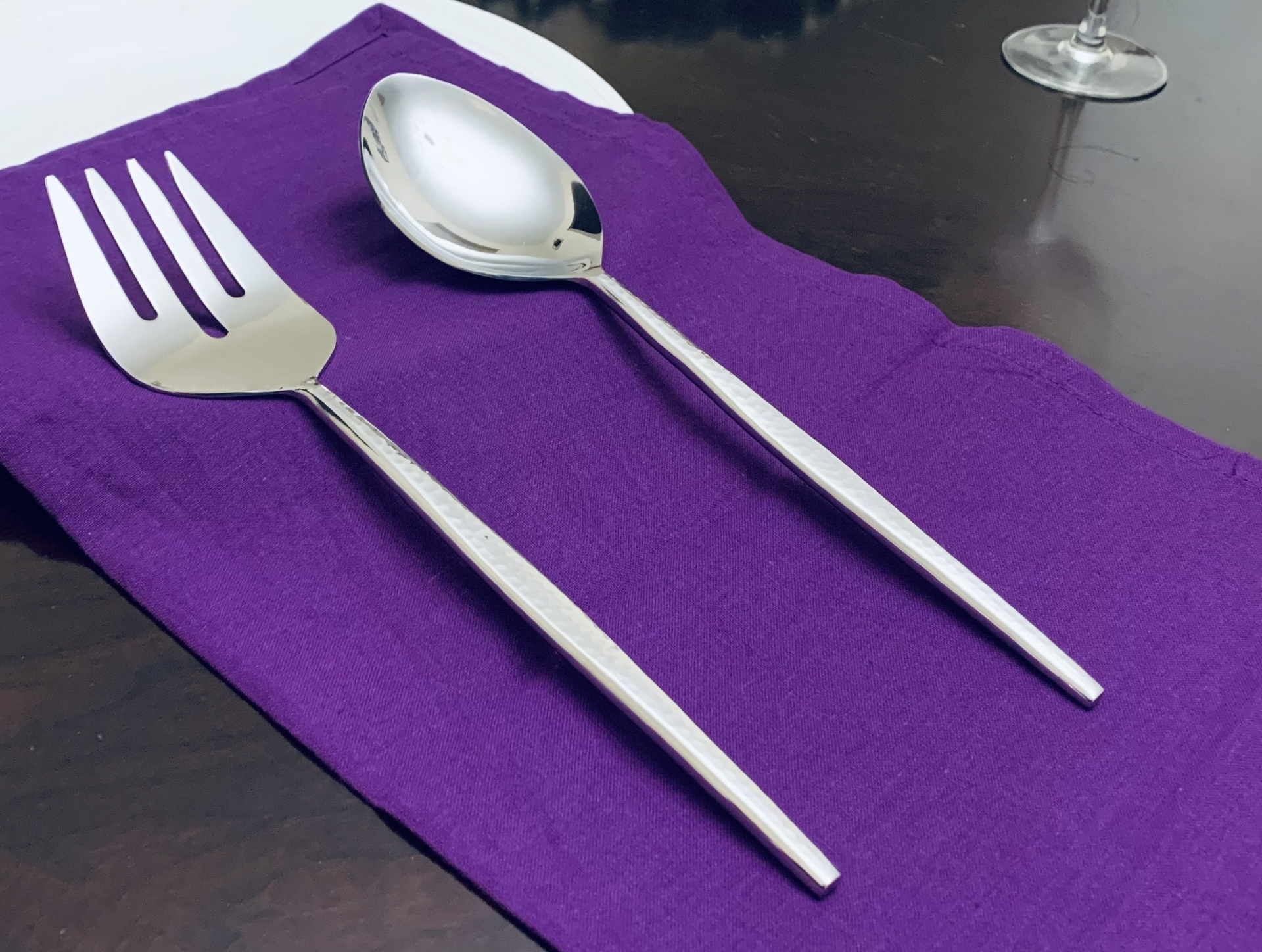 Set includes 2 pieces-Dinner Serving Spoon and Salad serving fork.