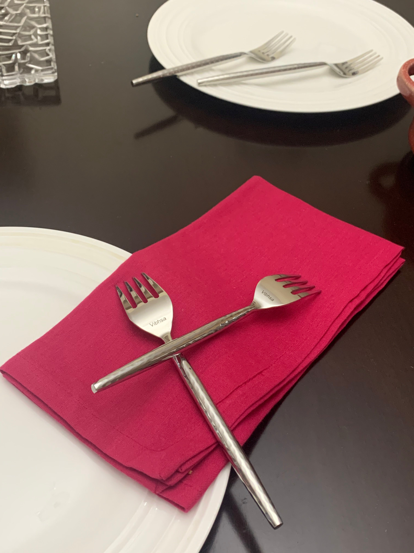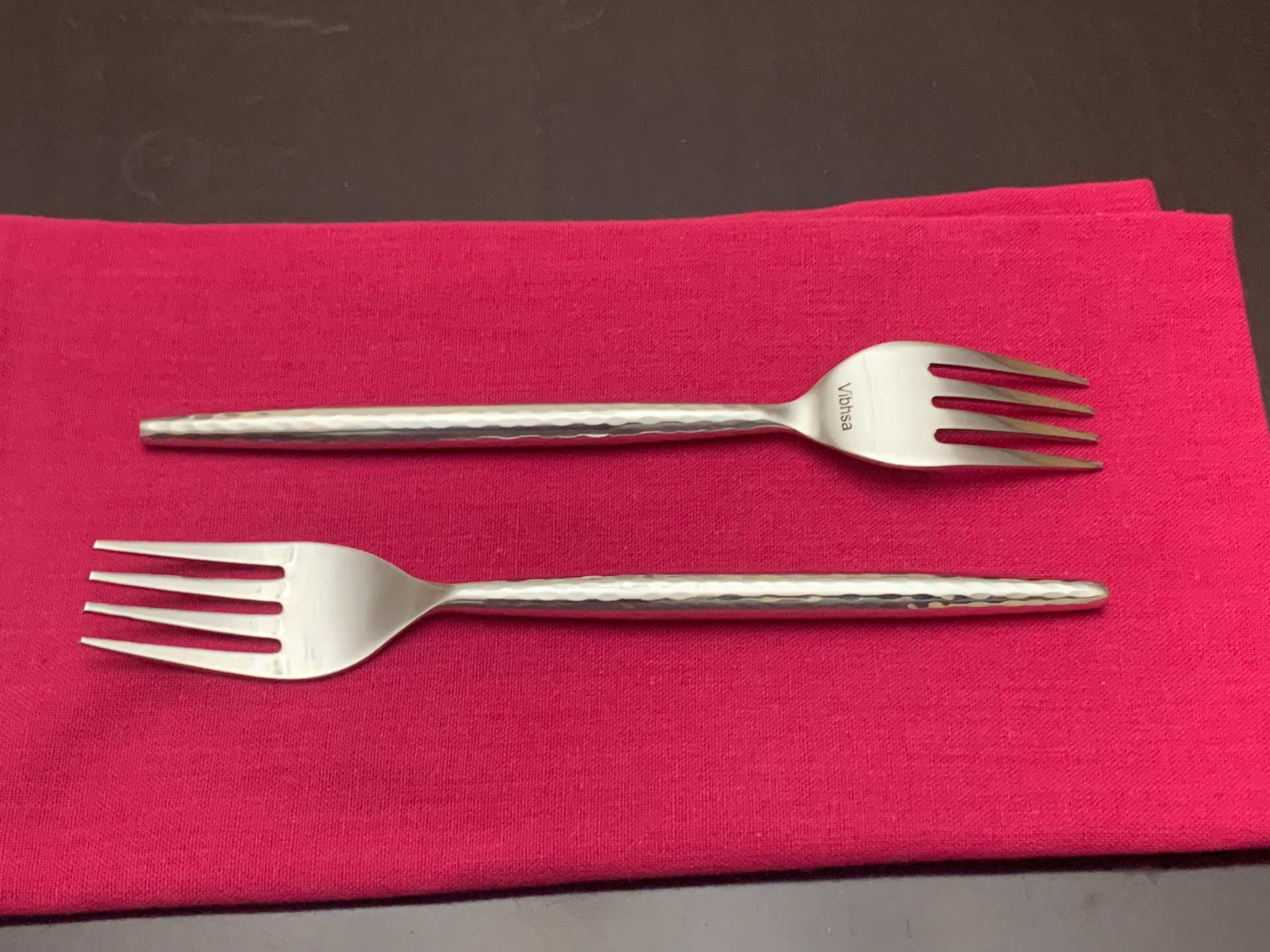 Give an attractive charm to your dining decor with Vibhsa's luxurious flatware set. Each piece is elegantly handmade, and no 2 pieces will be alike. 6 Salad Forks (6.2"x1.1"x0.7")