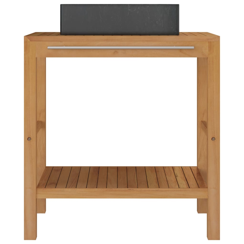 vidaXL Bathroom Vanity Cabinet Solid Teak with Sink Marble Black