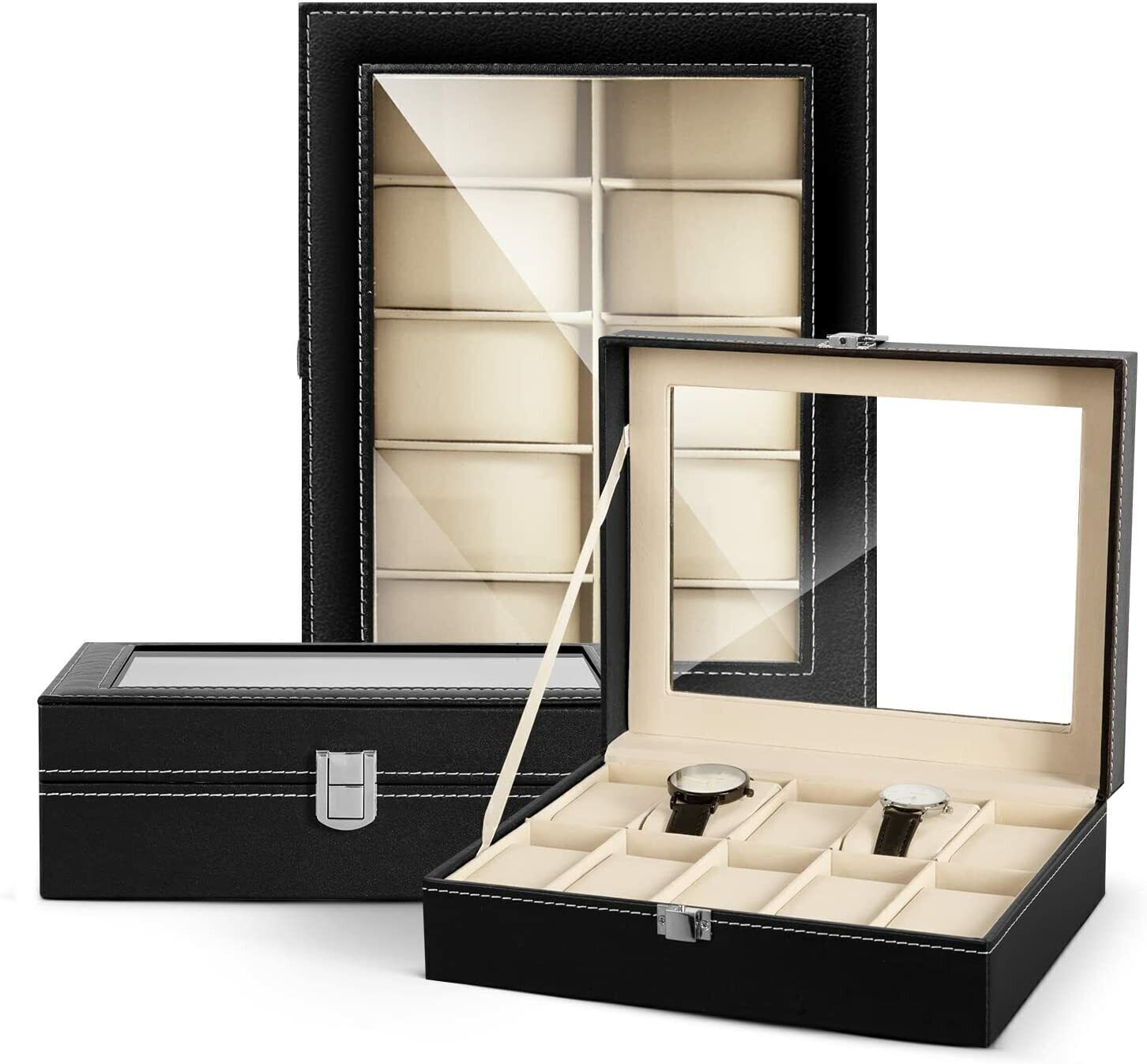 ● Crystal-clear glass lid keeps your watches from dust meanwhile offers you an open view of the watches.
