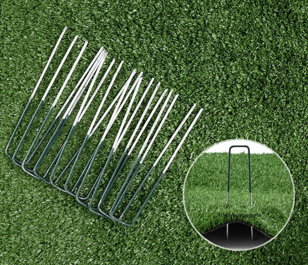 U-shaped turf nails are 150mm long, 30mm wide and 3mm thick.