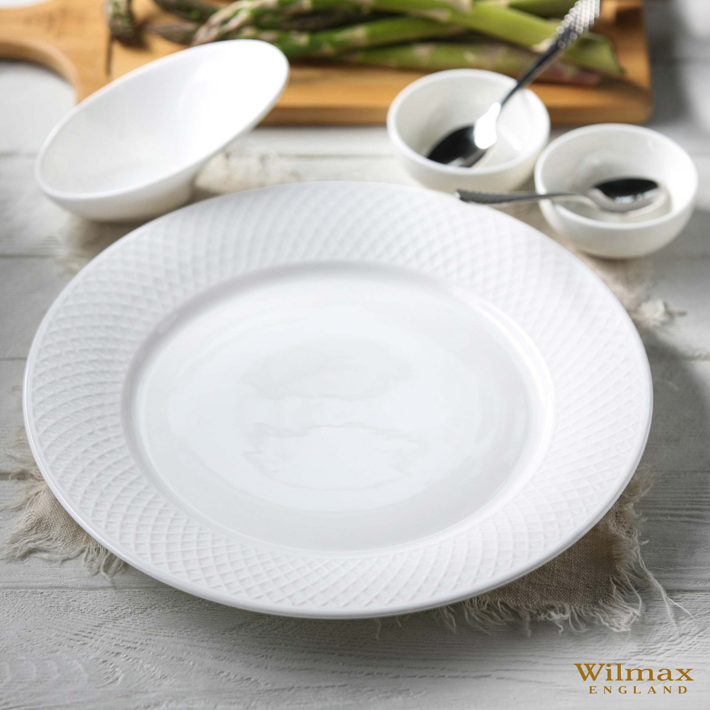 White Dinner Plate With Embossed Wide Rim 10" inch | Set Of 6 In Gift Box