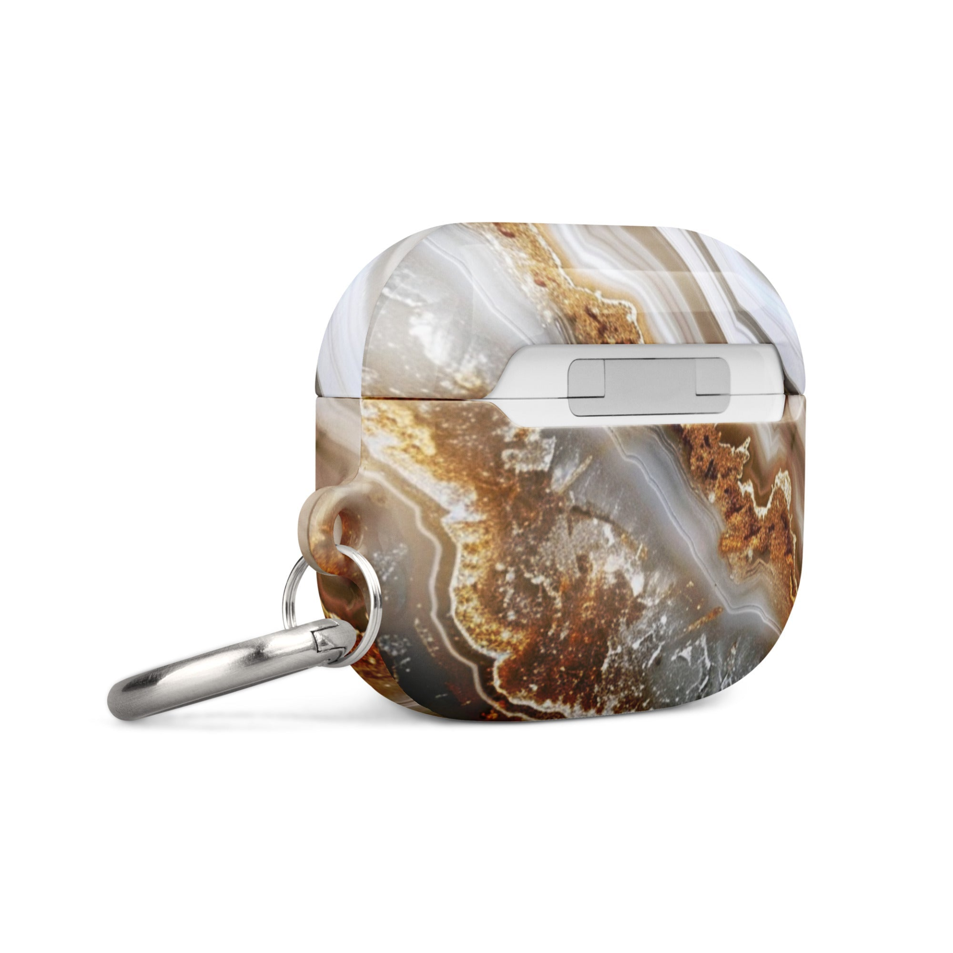 Protect your AirPods® in style with our premium case! Made from impact-absorbing material, it shields your earbuds from scratches and drops, keeping them pristine. The included metal carabiner allows easy attachment to your bag, keys, or anywhere else for convenient access.