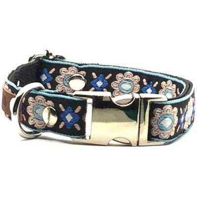 Durable designer handmade dog collars for Small dog breeds. Fabric: 100% cotton with an interfacing inner for extra strength with a designed pattern. Width: collar and metal hardware 15 mm each. This collar can fit larger dogs, but please be aware that the collar's strength increases with its size. A wide choice of designs and patterns would make a lovely addition to your pet's wardrobe. Personalisation: Make your pet gorgeous with an engraved collar buckle! Add its name, and we'll make engraving in an easy-to-read way. These dog collars provide long-lasting durability with an additional layer of interfacing for extra strength. Pet owners can choose from a wide variety of colourful designs and patterns to make a unique statement with their pet. The personalised engraved collar buckle offers an extra special touch for your beloved pet.