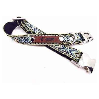 Durable designer handmade dog collars for Small dog breeds. Fabric: 100% cotton with an interfacing inner for extra strength with a designed pattern. Width: collar and metal hardware 15 mm each. This collar can fit larger dogs, but please be aware that the collar's strength increases with its size. A wide choice of designs and patterns would make a lovely addition to your pet's wardrobe. Personalisation: Make your pet gorgeous with an engraved collar buckle! Add its name, and we'll make engraving in an easy-to-read way. This collar features a stylish design and practical features, perfect for any pet (and their humans). With the personalisation option, you can add a unique touch and show off your pet's individual style.