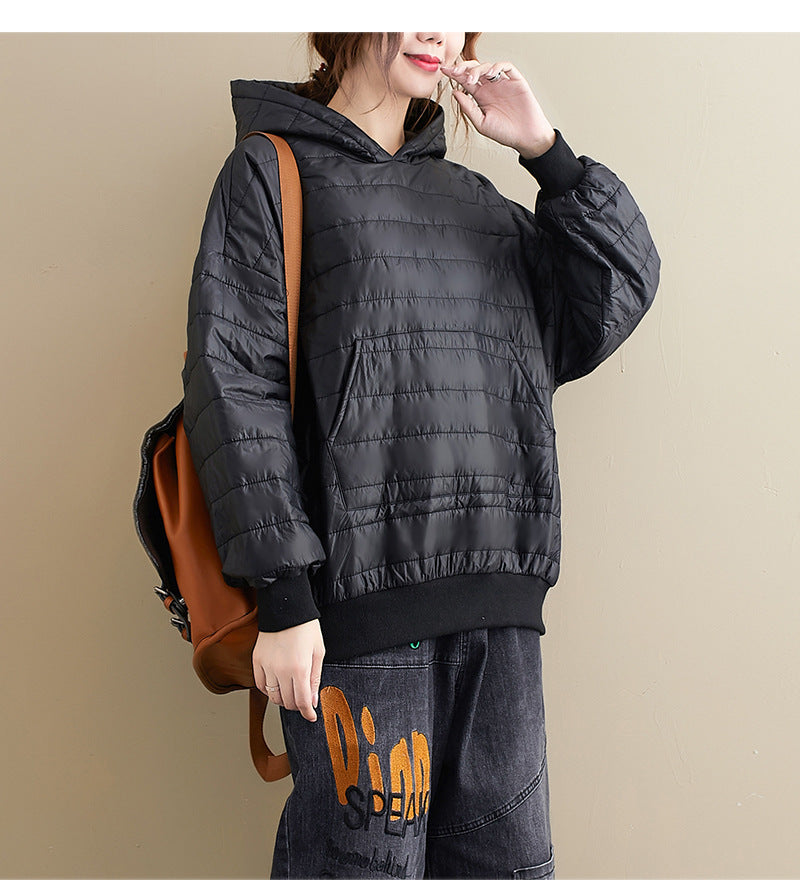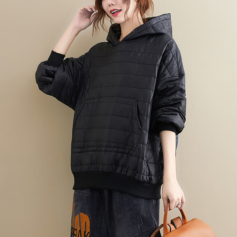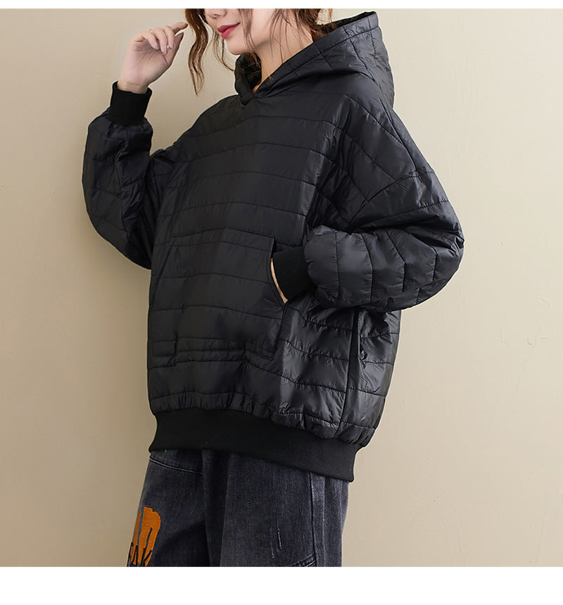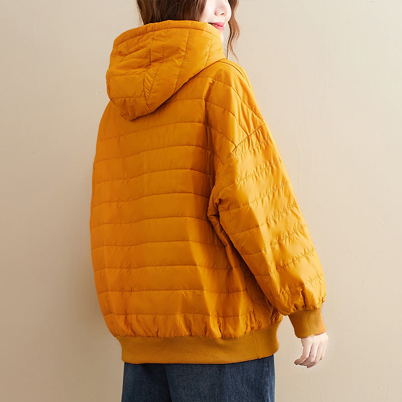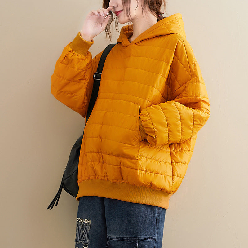 Winter New All-match Preppy Style Solid Color Hooded Loose Long-sleeved Cotton Jacket Jacket Women
