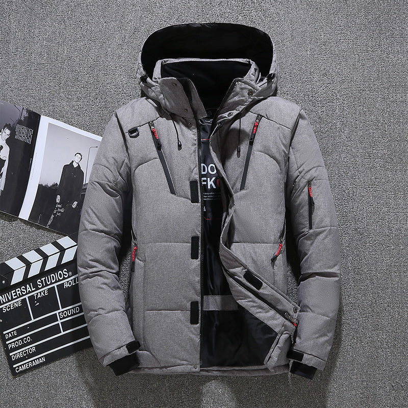 Winter Thick Men Jacket Solid Hooded Coats Hat Detachable Jacket