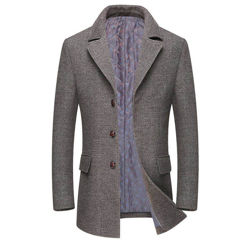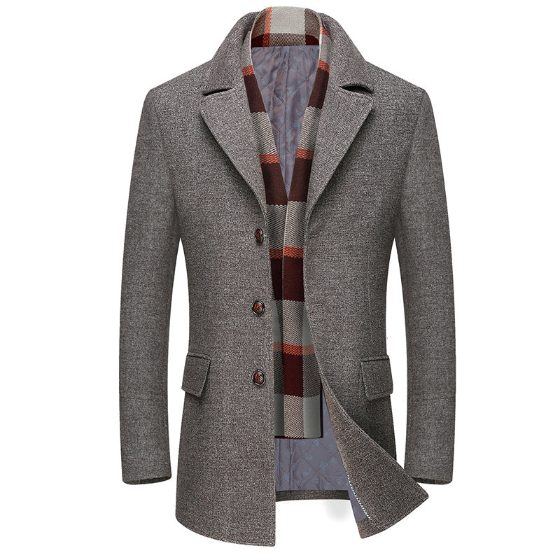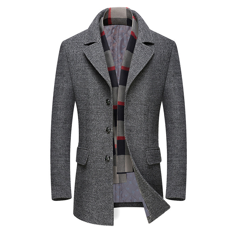 Winter Thick Men Wool Jackets Scarf Detachable Collar Fit Men Overcoats