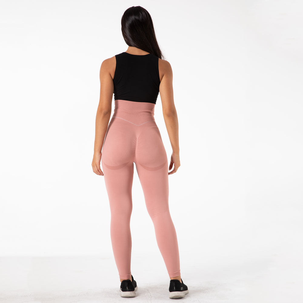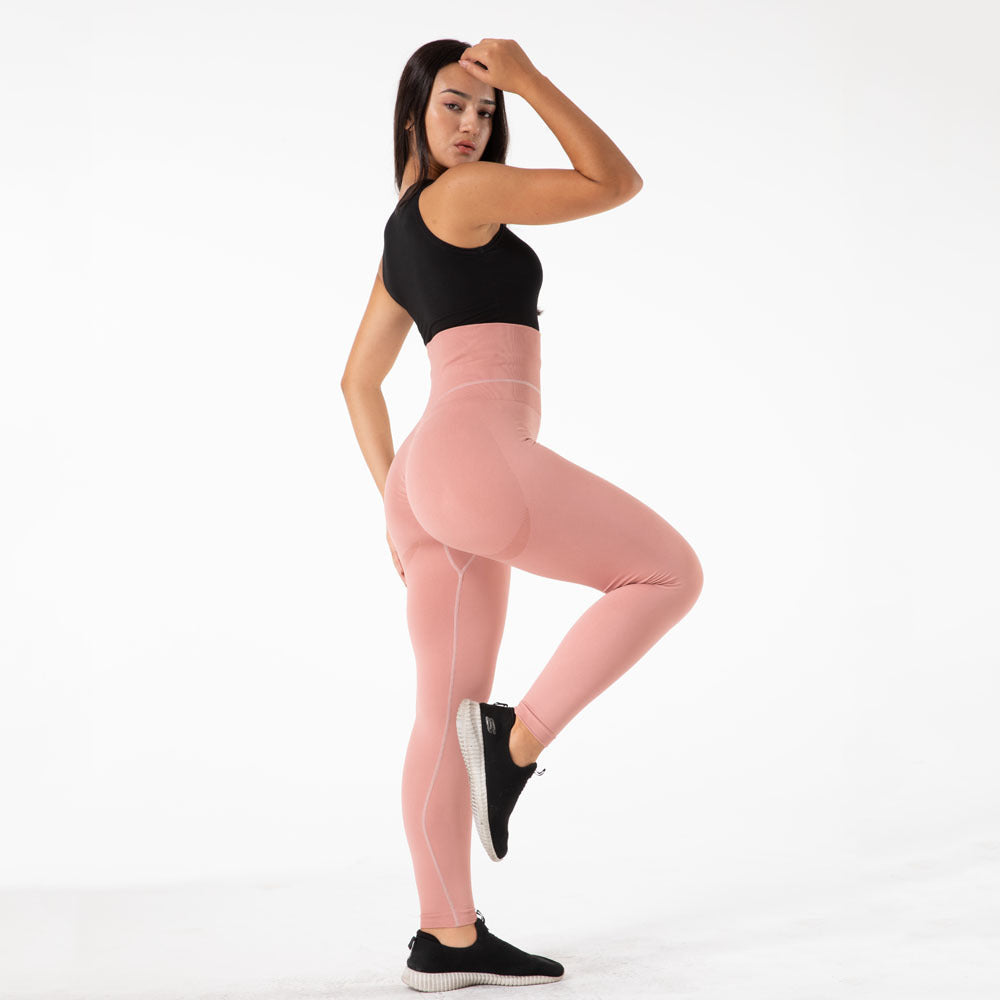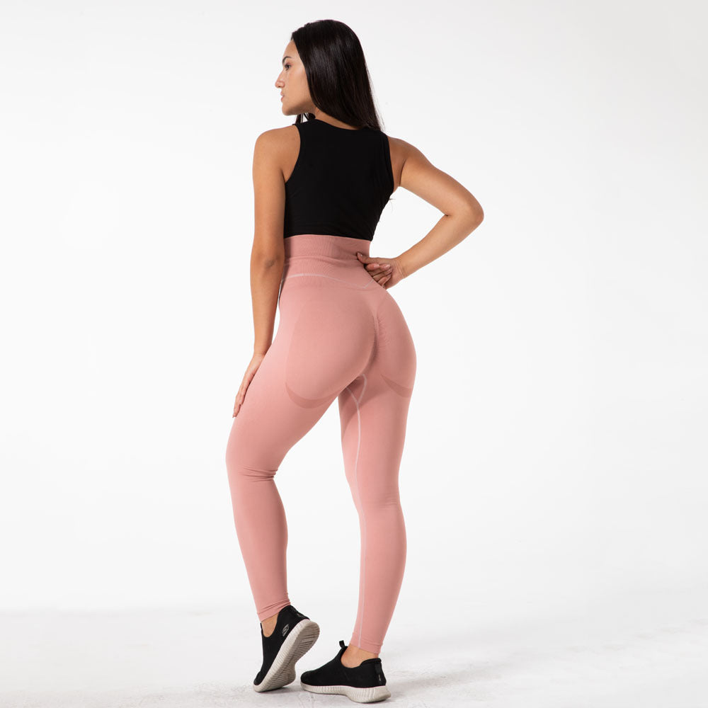 Women Solid Color Fitness Tight High Waist Forged Seamless Pink Yoga Pants