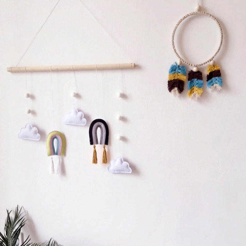 Wooden stick rainbow felt pendant wall decoration