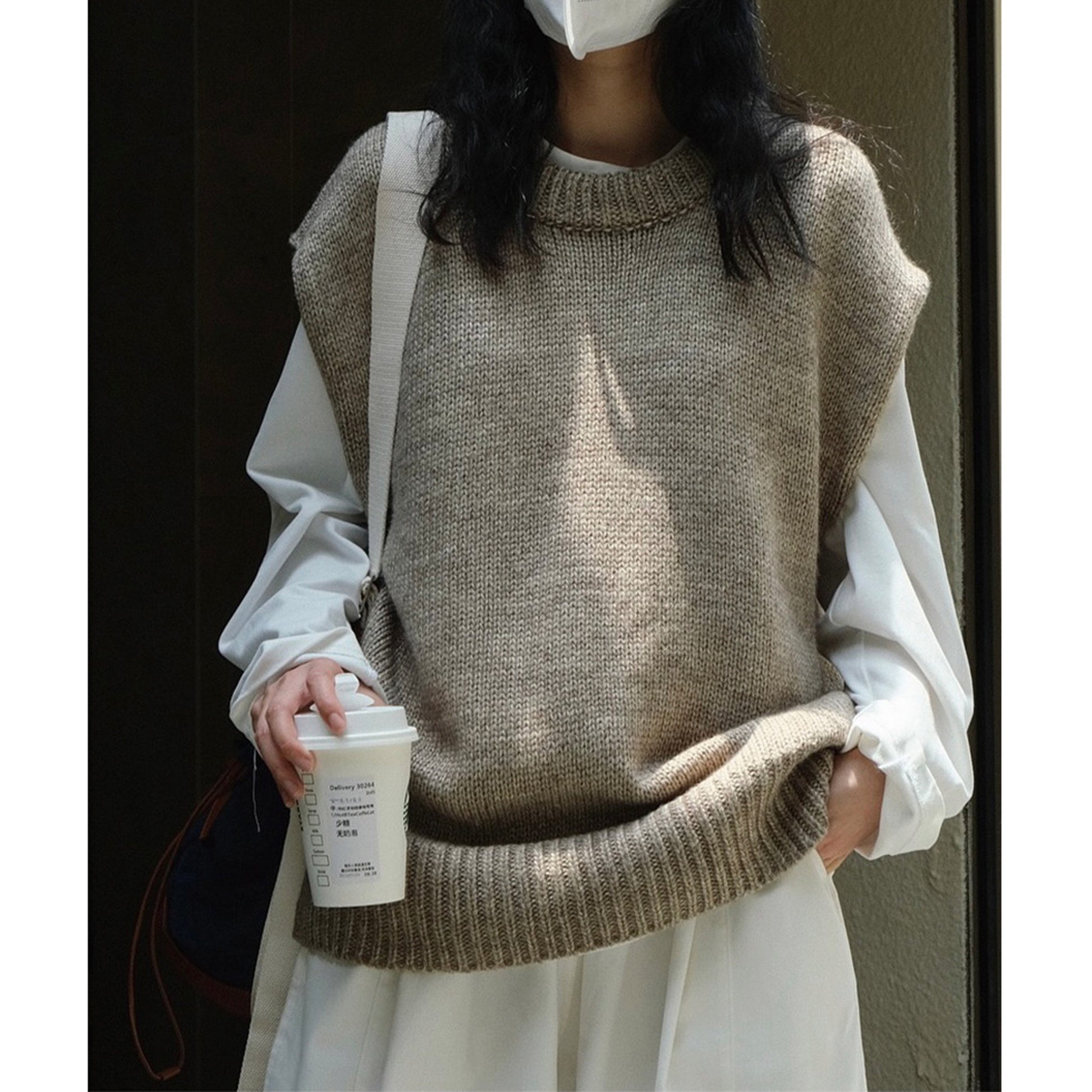 Wool Round-neck Knitted Waistcoat Loose Solid Color Sleeveless Wool Vest Handmade Clothing Gift For Women Hand knit Outfit Of The Day