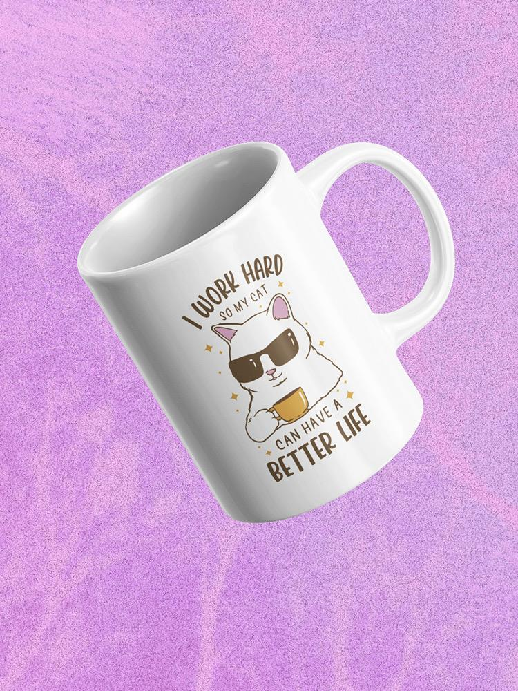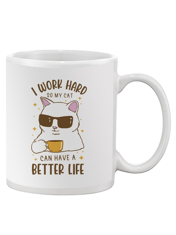 Work Hard Better Life Cat Mug -SmartPrintsInk Designs