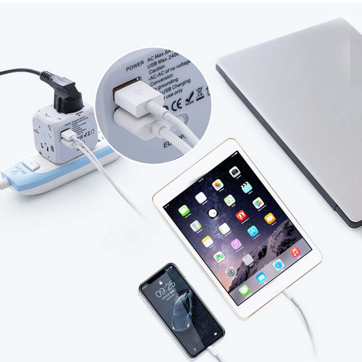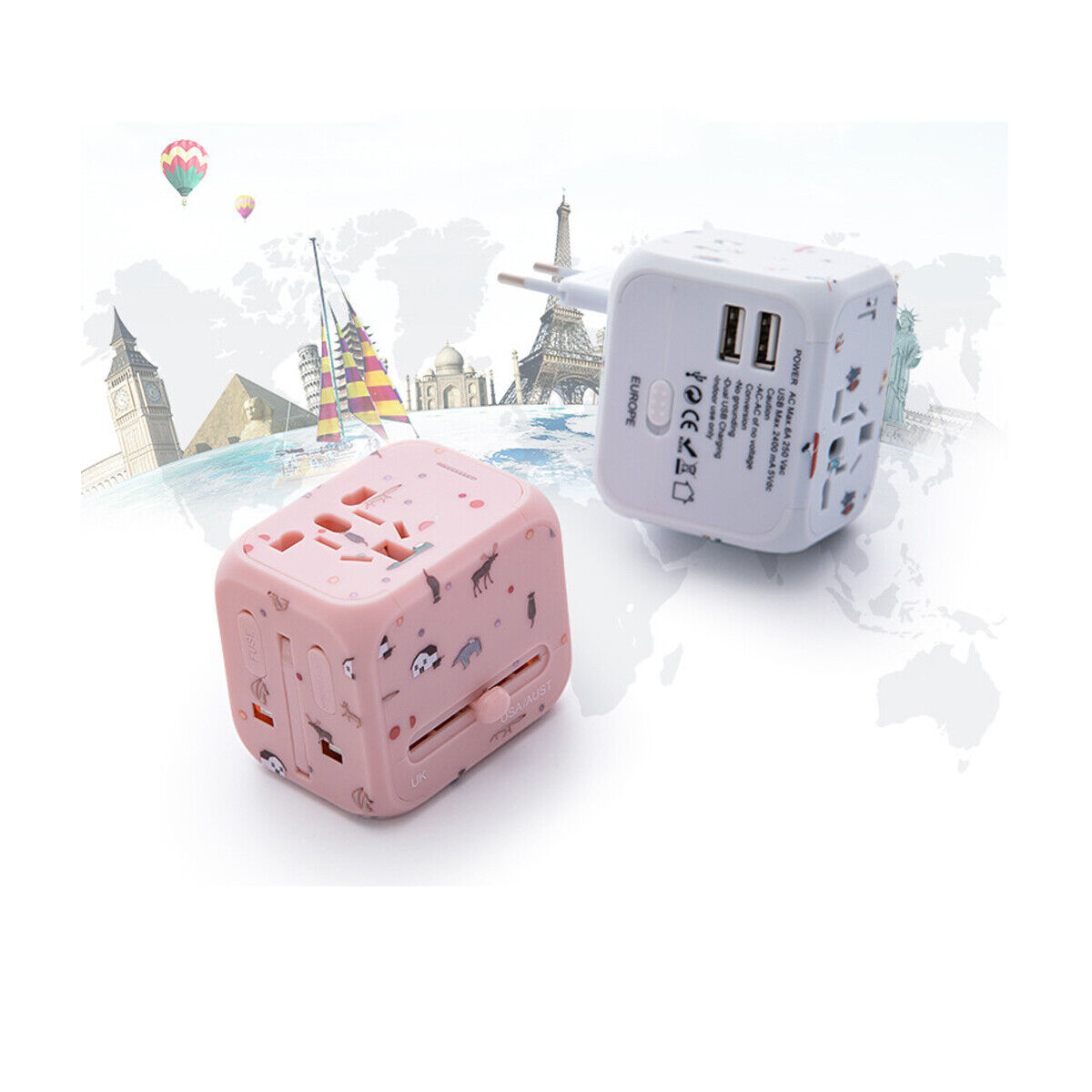 WorldWide Universal Outlet Travel Adapter UK EU US AU Multi Plug Charger W 2USB