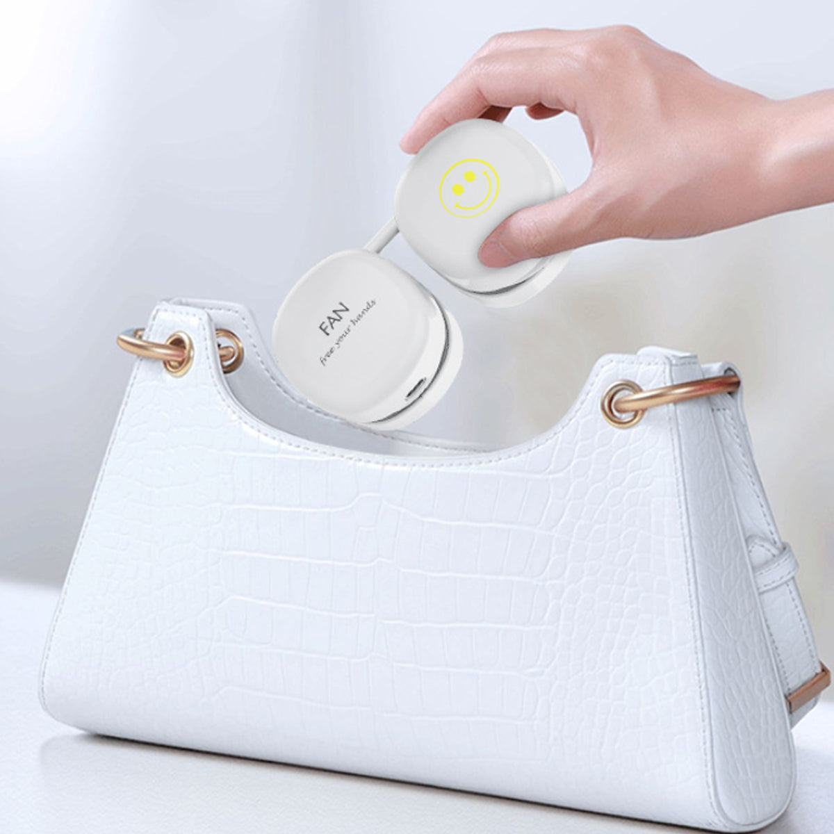 Look and feel cool with this classic, portable, foldable, and fashionable neck fan.